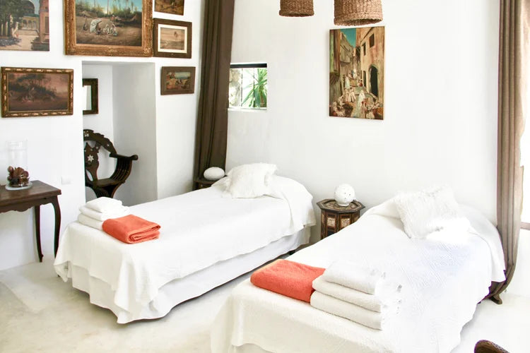 Nest & Perch is a duplex quadruple room (2 x twins, garden + mezzanine), ensuite bath, private rooftop terrace. Ideal for 4 guests who are comfortable sharing communal spaces.